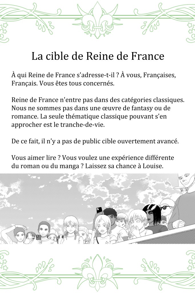 Vous pouvez lire gratuitement la prépublication de Reine de France sur Mangadraft. Seuls les chapitres pas encore parus en volume relié s’y trouvent. Pour retrouver les précédents sans se les procurer, rendez-vous sur Patreon.