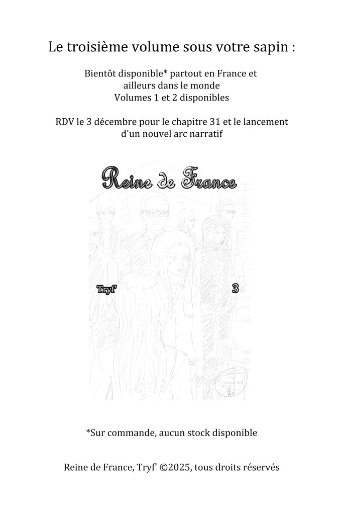 De plus je vais tout faire pour que le troisième volume sorte début décembre, histoire que vous puissiez le recevoir avant Noël. Ce n’est pas garanti à 100%, car je suis très occupé ces derniers jours, mais je vais trimer à fond.