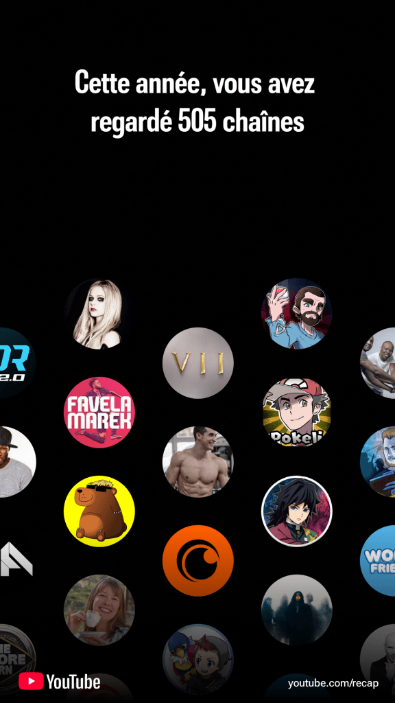 Vous aurez compris que si j’écoute ma musique sur Youtube, je n’utilise pas Spotify, qui a aussi fait beaucoup de pubs sur son propre récap. Je n’ai jamais mis les pieds sur cette appli, donc je n’ai rien à vous montrer.