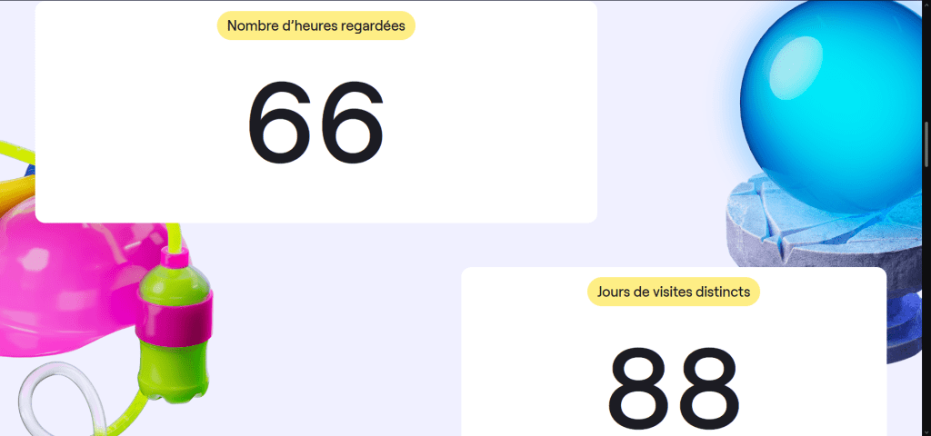 J’y joue depuis juin, c’est depuis cette première fois que je suis le direct sur la chaîne de Ponce. Les stats ici ne doivent compter qu’à partir du moment où j’ai créé mon compte (fin juillet). La prise en compte a dû aussi s’arrêter assez tôt car à partir de mi-novembre j’ai regardé un peu d’autres contenus (notamment Pokémon Z-A), qui n’est pas affiché ici. D’ailleurs je n’ai jamais regardé de Trackmania ou Pokémon Friends, allez savoir pourquoi ils sont là…