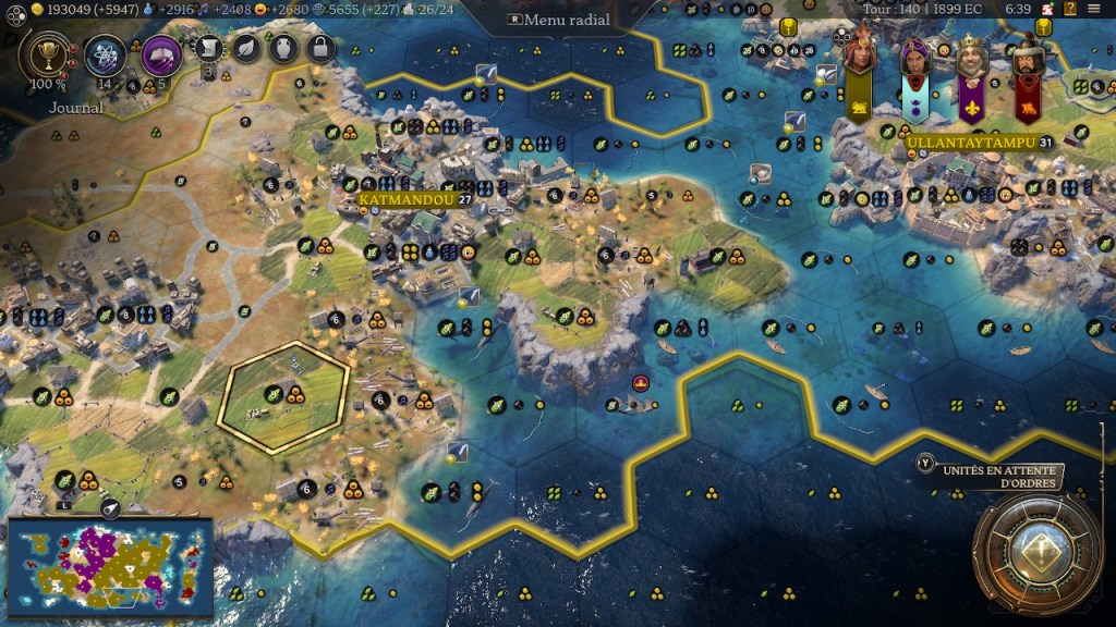 Je l’ai déjà dit mais Civilization c’est un investissement pour l’avenir : pour jouer de grandes parties dans 3/4 ans. Quand j’ai découvert le 6 en 2019, je ne m’attendais pas à grimper à plus de 3700 heures de jeu six ans plus tard. Les extensions, les ajouts de civ, les refontes d’autres, etc, ont abouti à ce résultat pour ma part : je continue, aujourd’hui encore, à prendre un plaisir immense à relancer ce jeu.